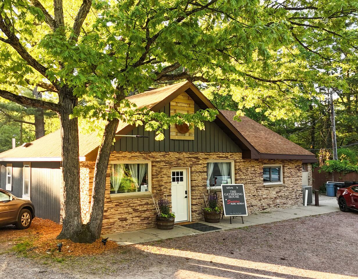 Welcome to our Airbnb retreat where the entire property is yours to explore! The Gathering House beckons you from 7:30am to 11:00pm, inviting you to indulge in a delightful cup of coffee, latte, espresso, cappuccino, or a soothing hot tea. Revel in the comfort of the space, complete with ample seating, Wi-Fi for your work needs, and an array of board games and cards. Two additional bathrooms ensure convenience for all. Feel free to bring your beverage of choice, order in some delicious food, or simply unwind on the couch, whether in the company of fellow guests or that special someone. Just steps away, our covered patio and grilling station await, accompanied by a spacious communal fire pit area under the starlit sky. Embark on a leisurely stroll down the property to discover a wooden walkway leading to the dock and the picturesque Wisconsin River. Sip your morning coffee by the water's edge or try your hand at fishing during the day. **During June-August, our dock bar welcomes river traffic on Saturdays (2pm-6ish) and Sundays (12pm-5ish). In the winter months (January-April), the Gathering House transforms into a pop-up Speakeasy from 7pm to 11pm on a number of Saturday nights. Fear not, our valued guests are always welcome, and you can even request to join the reservation list for our exclusive Speakeasy nights. Your unforgettable getaway awaits at our charming Airbnb haven!