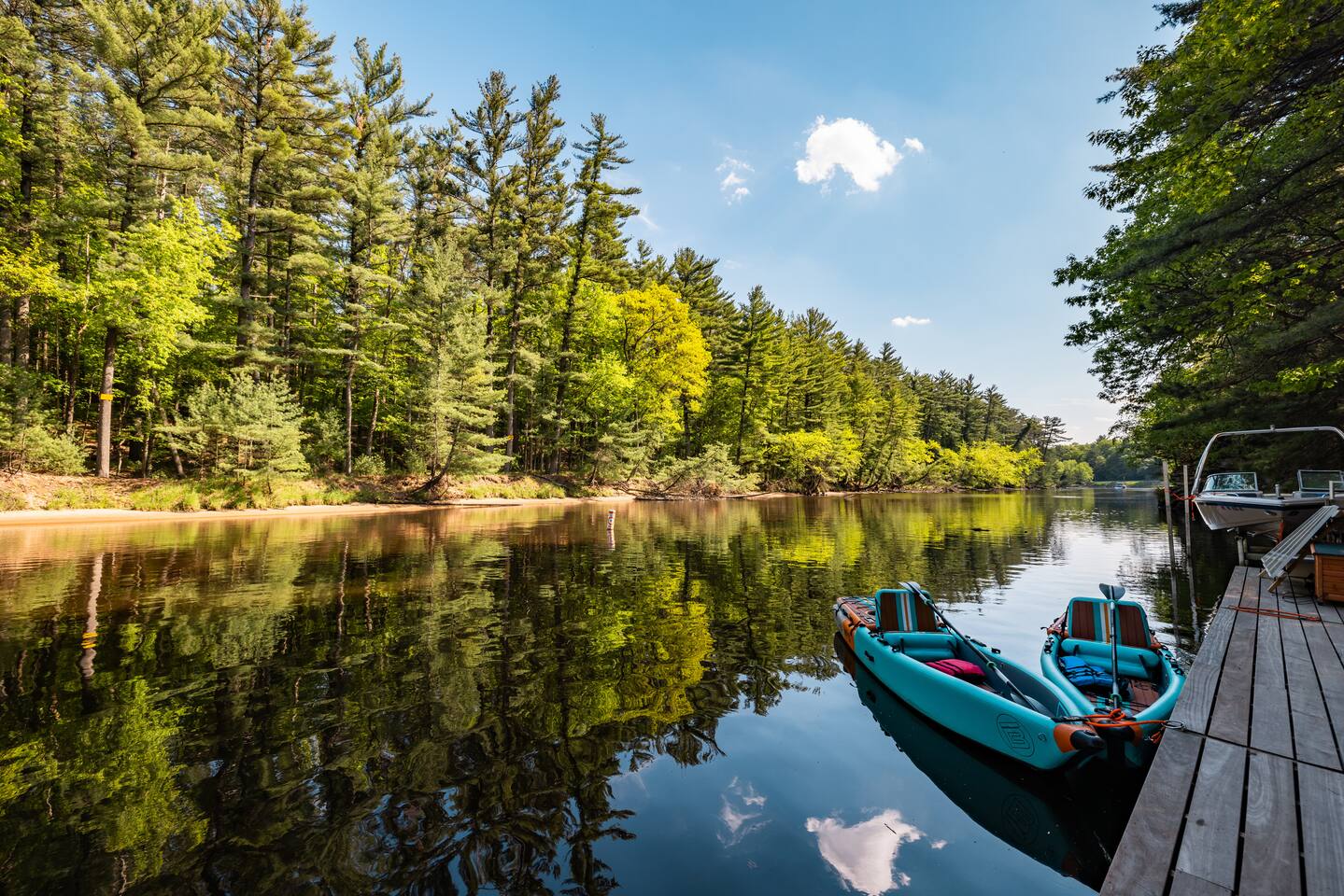 Pet Policy: The Deer Ridge Cabin is not dog friendly. If you’d like to travel with your pup, we do offer two dog-friendly cabins where pets stay free. Please see our other listings for availability. Swimming off the dock is not permitted. The Wisconsin River is unpredictable, with strong currents and unseen hazards beneath the surface. Summer (June–August) may include select weekend openings of the No Wake Zone dock bar. Winter (January–April) occasionally features intimate speakeasy evenings in the Gathering House. Quiet hours are observed from 11:00pm–8:00am to preserve the calm that defines Sandstone.
