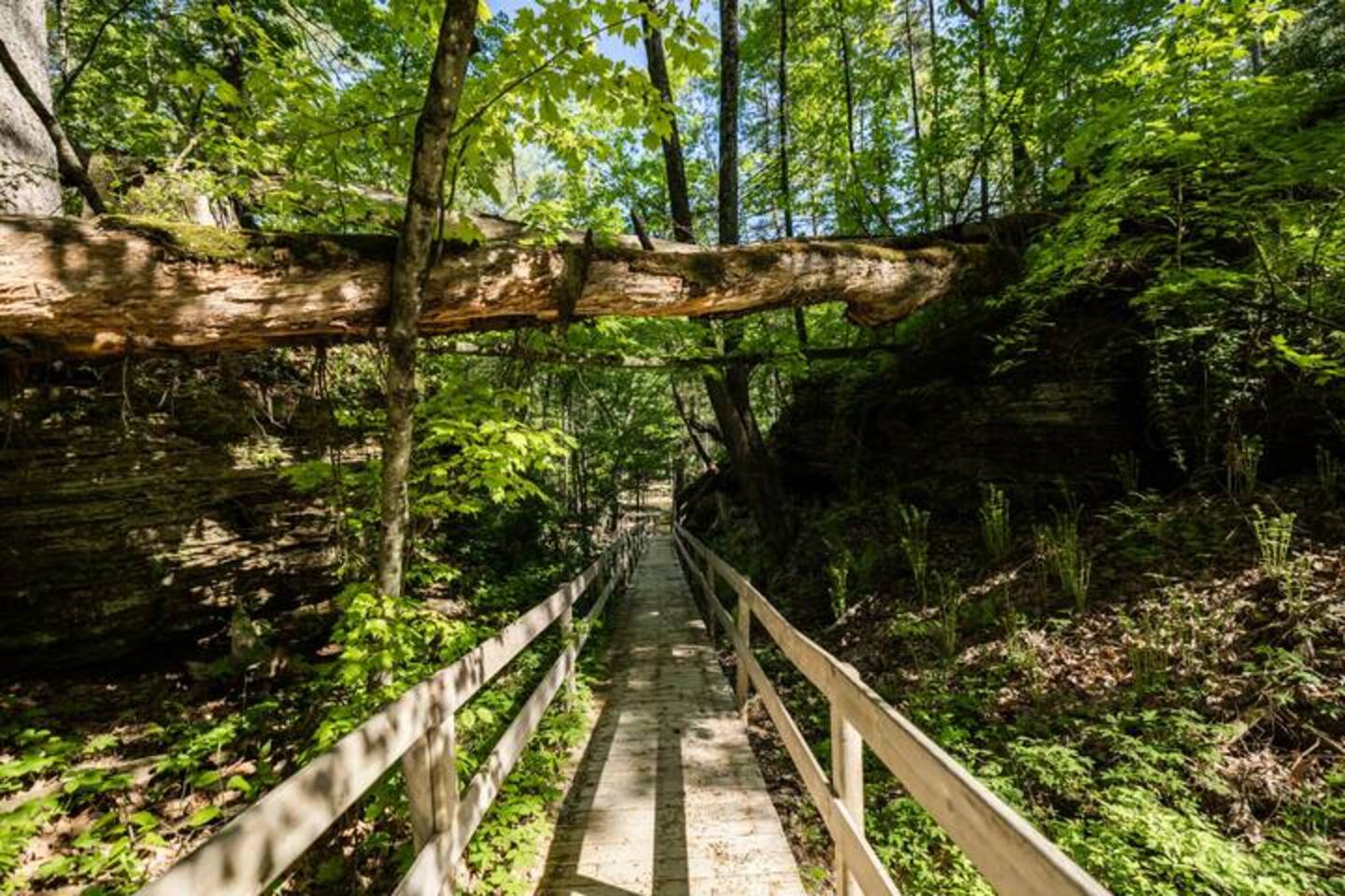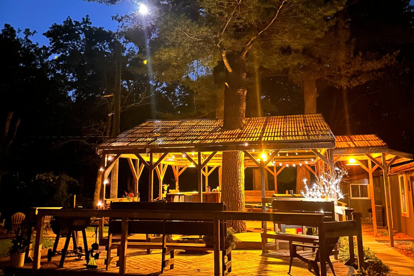 Welcome to Sandstone Rustic Retreat, a boutique destination designed for couples who value connection, quiet, and something truly different in the Wisconsin Dells. Just 1.8 miles from downtown, yet worlds away from the crowds, our six-acre property offers more stars, less people — an intentional space to unplug and rediscover what matters most. Our retreat features four thoughtfully remodeled cabins (each designed for couples), a cozy studio cottage, and four unique glamping domes. Every space blends rustic charm with modern comfort, giving you privacy while inviting you to explore the property together. At the heart of Sandstone is the Gathering House — a converted tavern now serving as a cozy community space with coffee, espresso, tea, WiFi, games, and fireside seating. Step outside to a covered deck, grilling area, and communal firepit perfect for conversations under the stars. In summer, our No Wake Zone dock bar welcomes river travelers on weekends, and in winter, the Gathering House transforms into an intimate speakeasy night a few times a month — a rare and unforgettable experience if your stay aligns. Wander the trails through whispering pines, follow our raised boardwalk through a sandstone canyon, and emerge at the crown jewel: a private dock on the quiet backwaters of the Wisconsin River. Here you’ll find breathtaking views, excellent fishing, and the kind of peaceful beauty you won’t find in town. More than a place to stay, Sandstone is a place to experience. Whether you’re sipping wine in a dome, sharing coffee on the deck, paddling the river in a kayak, or gathering friends for a private meal, every detail has been designed to help you slow down, reconnect, and create lasting memories. Pontoon Rental