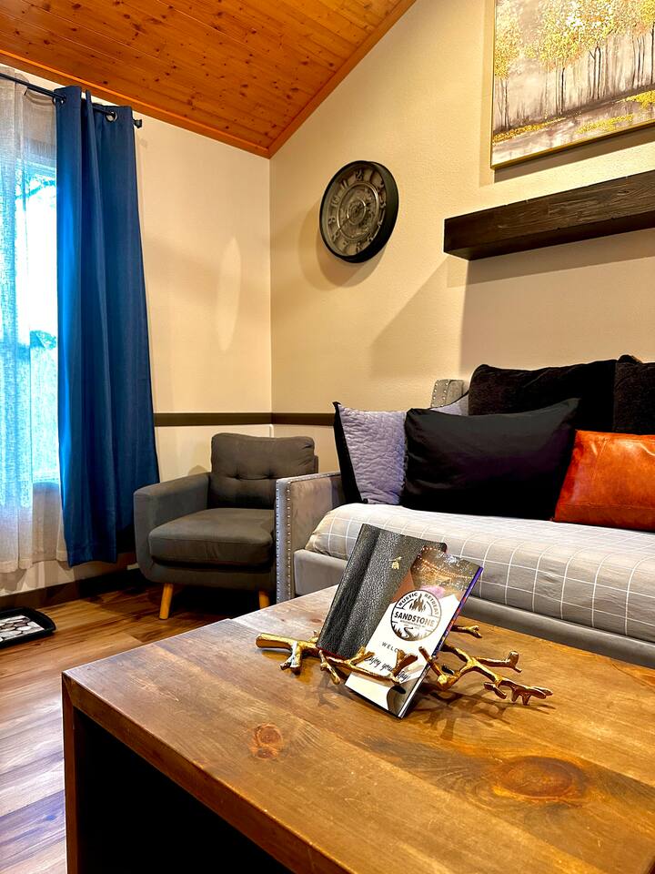 ✦ Eagles Nest Cabin @Sandstone-More Than a Stay, It’s an Experience Eagles Nest isn’t just a stay — it’s an escape. For couples seeking more stars, less people, this secluded retreat on 6 private acres offers trails, a canyon walkway to the river, and cozy spaces for connection. From a delightful latte in the Gathering House to stargazing around a firepit, every detail is designed for unforgettable moments. This isn’t for everyone — but if you want intimate, intentional, and real, this is it