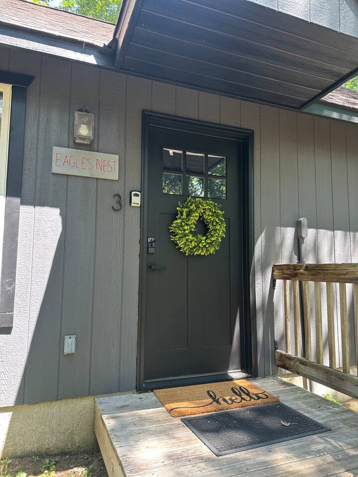 Special add-ons: private bartender service, beverage delivery, curated welcome packages Most of these services require advance notice to accommodate — and as with anything worthwhile, it takes planning. We can’t make magic happen if you don’t plan ahead, but when you do, unforgettable experiences are waiting. If you have a request, please inquire and we will do our best to accommodate. Pet Policy: The Eagles Nest Cabin is not dog friendly. If you’d like to travel with your pup, we do offer two dog-friendly cabins where pets stay free. Please see our other listings for availability. Seasonal Experiences: The No Wake Zone dock bar is open on summer weekends (June–August). During winter (January–April), the Gathering House occasionally transforms into an intimate speakeasy night — a rare and unforgettable experience if your stay aligns. Concierge Services: Many of our curated add-ons (wellness sessions, private dining, transportation, etc.) require advance notice. As with anything worthwhile, it takes planning — we can’t make magic happen last-minute, but when you plan ahead, unforgettable experiences await. Community Atmosphere: While your cabin is fully private, Sandstone is also a retreat community. Guests often gather at the firepit, enjoy morning coffee in the Gathering House, or cross paths on the trails — making it easy to connect if you wish, and retreat if you don’t.