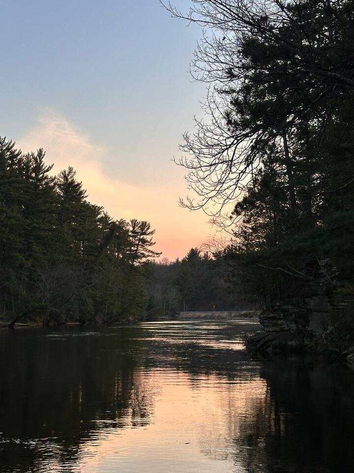Hiking & Recreation Devils Lake is 20min away in Baraboo. Rocky Arbor State park is 2 min from our location. Mirror Lake State Park is 10 min from our location. Shopping: Walmart is a short drive down I90 (7mi) Tanger Outlet mall is a short drive down I90 (8 mi) Coffee & Breakfast: *Bella Goose is our favorite spot for coffee, waffles and cookies! They have other breakfast and lunch options too and are located right down by the dam which is less than 1.5 miles away. *Courtyard Cafe has a large variety of breakfast and lunch options. They are open until 2:00 every day. *Cedar Creek Rustic Village is a bar, restaurant and furniture store all in one! Less than 10 minutes from us towards Lyndon Station. *Denny's Diner (not the chain) located in Lake Delton, nostalgic atmosphere and amazing cinnamon rolls! *Dunkin, Starbucks, Denny's and IHOP are also 1.5 miles away. Dining: There's so much to take in...here's our favorites: *Lake City Social - Large variety of food option. Great food, great drinks, great people! *Riverwalk Pub - Log cabin atmosphere and great food. *Showboat - Hot Wings & Warm Beer & Loud Music...Dells Historical site. Great food options and one of my favorite places for pizza. *Monks(DOWNTOWN) - You can't do the Dells without getting a Monk Burger *B-Lux - Milkshakes are incredible and the best cheese curds in town! *Summer House (Summer months) Awesome patio overlooking Lake Delton *Brat House - Late night eats and great German dishes! *Sorentos - Italian fare, great spot for an intimate dinner. Ask for the fireplace table! *Del-Bar - Famous Wisconsin Supper Club with some awesome Steaks! *Ishnala - (open April-Sept/Oct.) It's an experience. Plan for an evening and get there early. *House of Embers - Supper club feel, large variety with great prime rib and pasta. *Jose's - Great spot right up the road with the best Mexican in town. Enjoy the 120oz Margarita with your friends! *A bit off the beaten path...J's Pub in Reedsburg. Great Pork Tenderloin, Salmon, Steak and two fireplaces to warm you up. Gas station & Convenience Store is 1 mile away