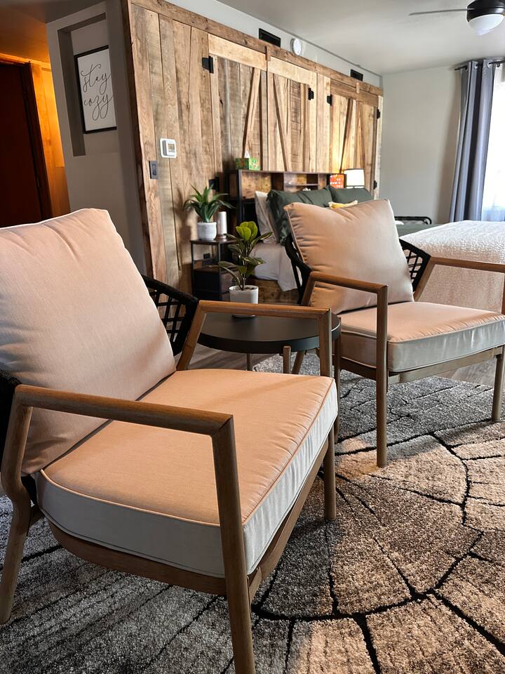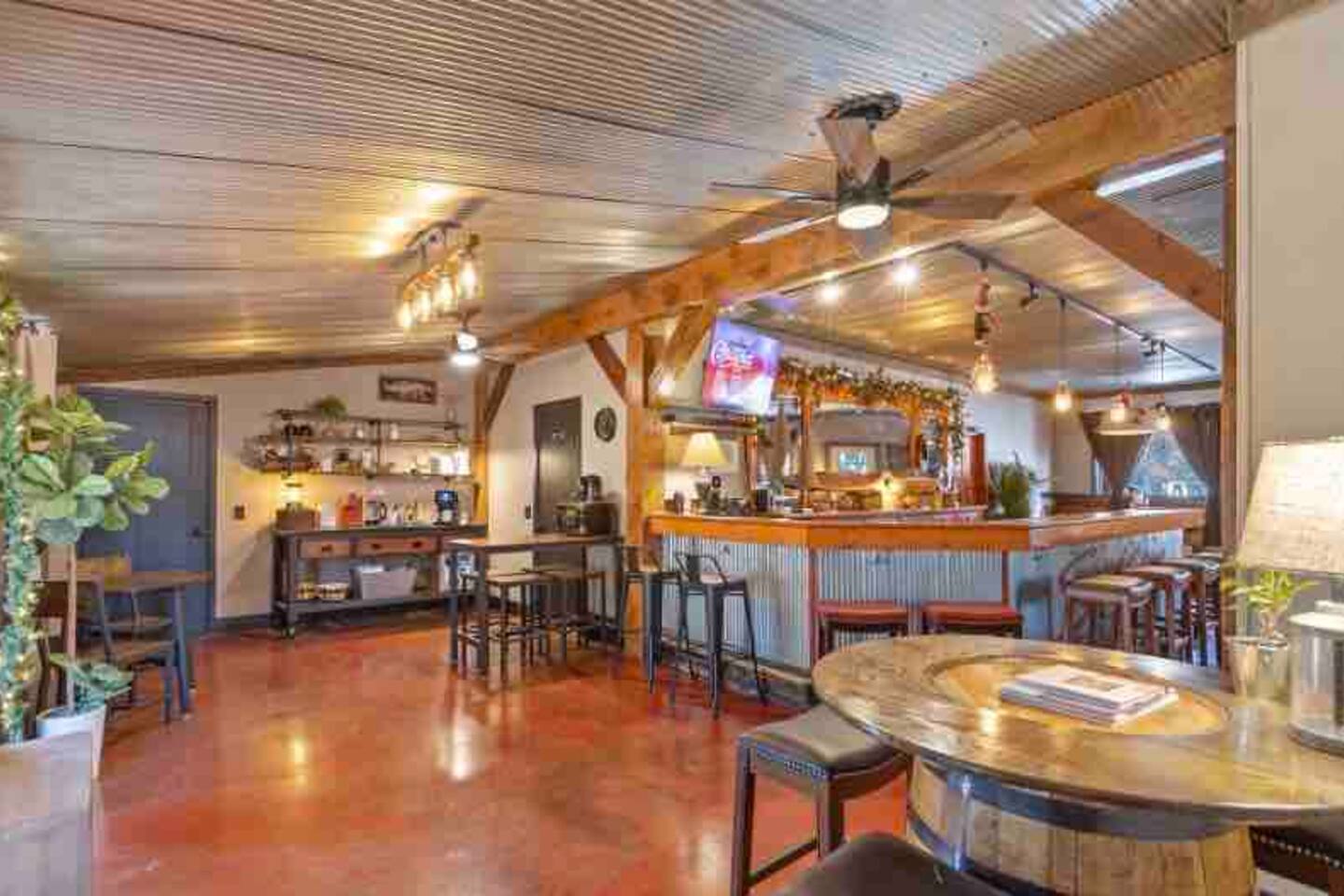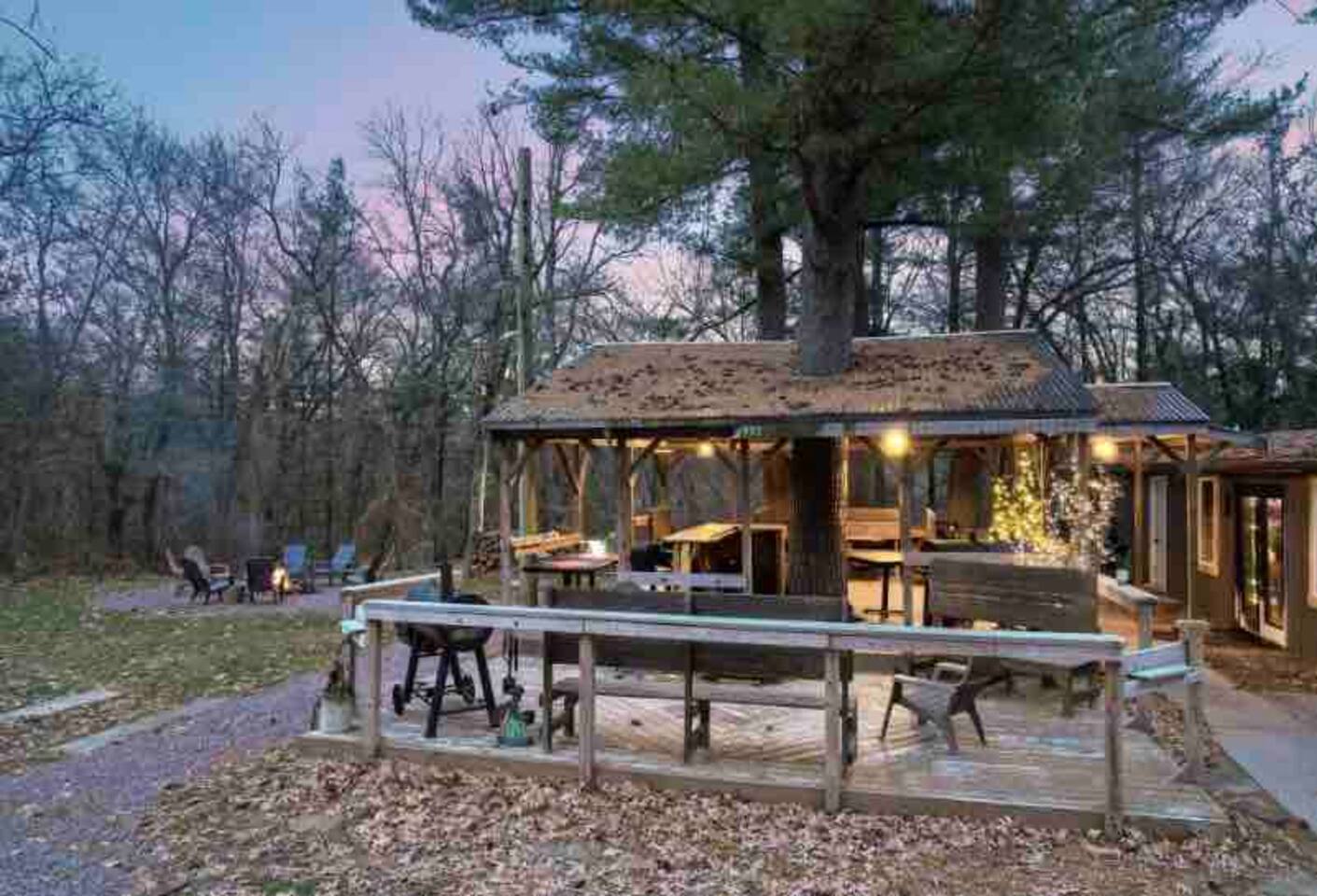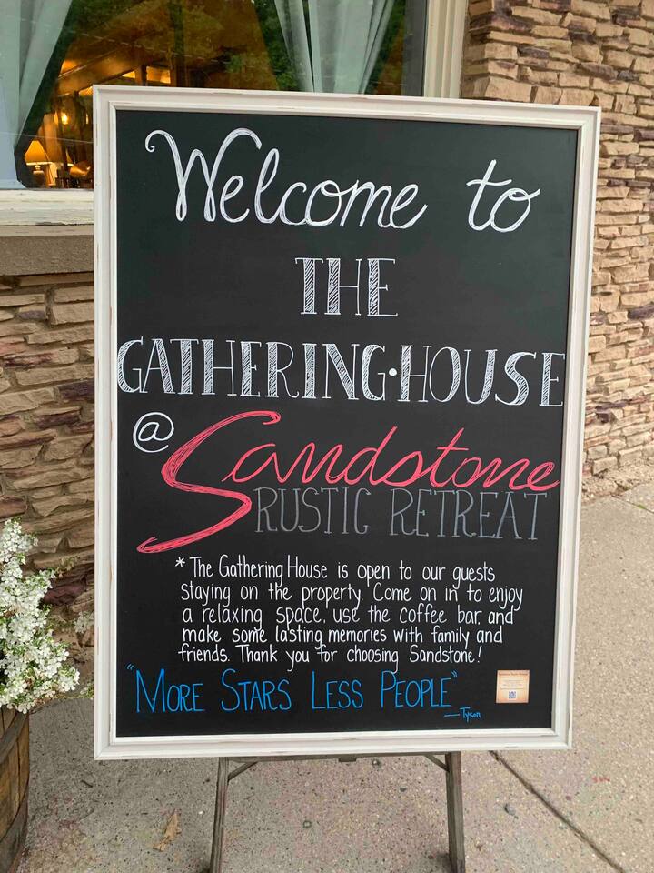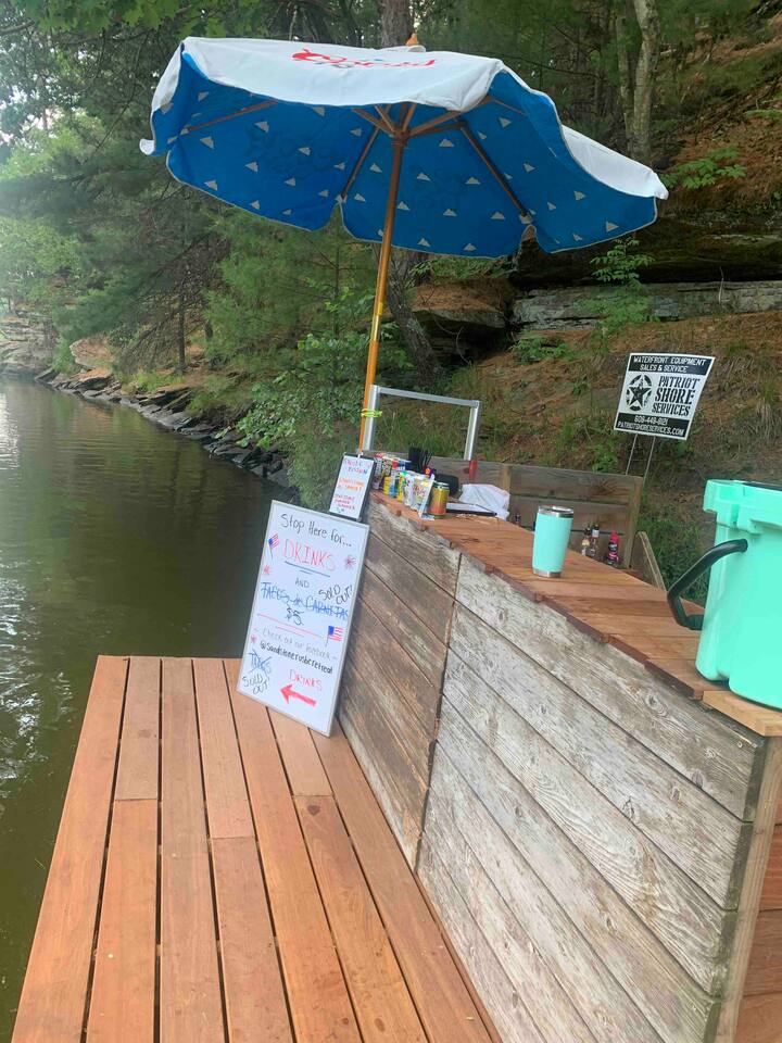 Welcome to our Airbnb retreat where the entire property is yours to explore! The Gathering House beckons you from 7:30am to 11:00pm, inviting you to indulge in a delightful cup of coffee, latte, espresso, cappuccino, or a soothing hot tea. Revel in the comfort of the space, complete with ample seating, Wi-Fi for your work needs, and an array of board games and cards. Two additional bathrooms ensure convenience for all. Feel free to bring your beverage of choice, order in some delicious food, or simply unwind on the couch, whether in the company of fellow guests or that special someone. Just steps away, our covered patio and grilling station await, accompanied by a spacious communal fire pit area under the starlit sky. Embark on a leisurely stroll down the property to discover a wooden walkway leading to the dock and the picturesque Wisconsin River. Sip your morning coffee by the water's edge or try your hand at fishing during the day. **During June-August, our dock bar welcomes river traffic on Saturdays (2pm-6ish) and Sundays (12pm-5ish). In the winter months (January-April), the Gathering House transforms into a pop-up Speakeasy from 7pm to 11pm on a number of Saturday nights. Fear not, our valued guests are always welcome, and you can even request to join the reservation list for our exclusive Speakeasy nights. Your unforgettable getaway awaits at our charming Airbnb haven!