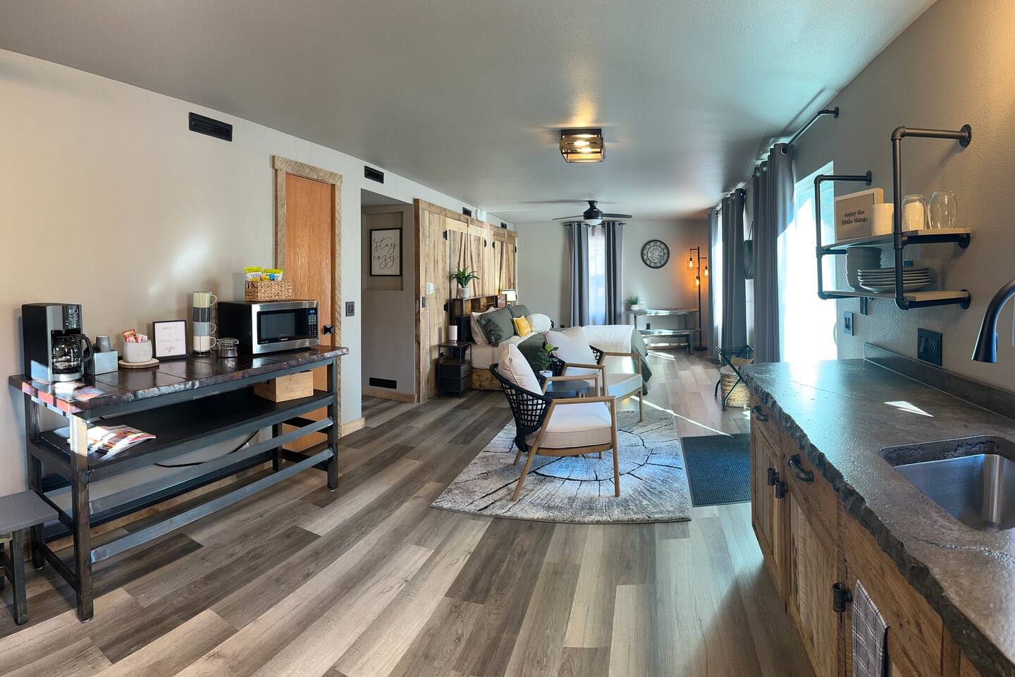 Hiking & Recreation Devils Lake is 20min away in Baraboo. Rocky Arbor State park is 2 min from our location. Mirror Lake State Park is 10 min from our location. Shopping: Walmart is a short drive down I90 (7mi) Tanger Outlet mall is a short drive down I90 (8 mi) Coffee & Breakfast: *Bella Goose is our favorite spot for coffee, waffles and cookies! They have other breakfast and lunch options too and are located right down by the dam which is less than 1.5 miles away. *Courtyard Cafe has a large variety of breakfast and lunch options. They are open until 2:00 every day. *Cedar Creek Rustic Village is a bar, restaurant and furniture store all in one! Less than 10 minutes from us towards Lyndon Station. *Denny's Diner (not the chain) located in Lake Delton, nostalgic atmosphere and amazing cinnamon rolls! *Dunkin, Starbucks, Denny's and IHOP are also 1.5 miles away. Dining: There's so much to take in...here's our favorites: *Lake City Social - Large variety of food option. Great food, great drinks, great people! *Riverwalk Pub - Log cabin atmosphere and great food. *Showboat - Hot Wings & Warm Beer & Loud Music...Dells Historical site. Great food options and one of my favorite places for pizza. *Monks(DOWNTOWN) - You can't do the Dells without getting a Monk Burger *B-Lux - Milkshakes are incredible and the best cheese curds in town! *Summer House (Summer months) Awesome patio overlooking Lake Delton *Brat House - Late night eats and great German dishes! *Sorentos - Italian fare, great spot for an intimate dinner. Ask for the fireplace table! *Del-Bar - Famous Wisconsin Supper Club with some awesome Steaks! *Ishnala - (open April-Sept/Oct.) It's an experience. Plan for an evening and get there early. *House of Embers - Supper club feel, large variety with great prime rib and pasta. *Jose's - Great spot right up the road with the best Mexican in town. Enjoy the 120oz Margarita with your friends! *A bit off the beaten path...J's Pub in Reedsburg. Great Pork Tenderloin, Salmon, Steak and two fireplaces to warm you up. Gas station & Convenience Store is 1 mile away