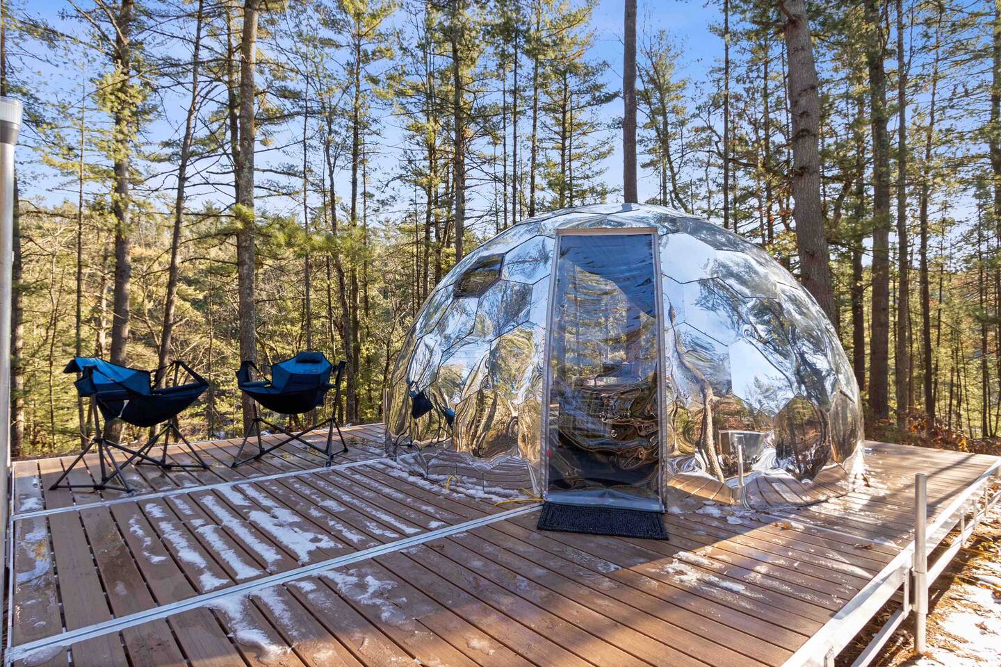 Welcome to our enchanting glamping experience in the heart of Wisconsin Dells! This listing offers a unique opportunity to stay in one of our four individual glamping domes, each providing a cozy retreat for up to two guests. Nestled in the serene middle part of our 6-acre property, these domes offer both privacy and a connection with nature.Three of our domes are elevated on a platform, offering stunning views of the surroundings, while the fourth dome sits at ground level, providing easy access to the lush landscape. Each dome boasts its own private fire pit, chairs, and table, creating the perfect setting for intimate conversations or stargazing by the warmth of the fire.For your convenience, there's a shared bathhouse featuring two full bathrooms, ensuring a comfortable and refreshing stay for all guests. Additionally, your group will have access to our private Gathering House, a charming space to relax and hang out during your stay. Embrace the warmer months by renting our kayaks and exploring the nearby river. On Saturdays and Sundays, our dock bar opens, offering a delightful spot to unwind with picturesque views. If you're a boating enthusiast, our private dock with river access allows you to dock your boat during your stay, providing easy access to fishing adventures. While our property feels like a secluded oasis, it's conveniently located less than 2 miles from downtown Wisconsin Dells. Escape the hustle and bustle, yet enjoy quick access to a myriad of activities, including golfing, waterparks, shopping, wineries, ziplining, animal experiences, horseback riding, skiing, snow tubing, hiking, and more! For those looking for a guided exploration, consider one of the wonderful trolley tours perfect for small groups. Discover the rich offerings of this area, where adventure and relaxation seamlessly coexist. Book your stay in our glamping domes and create unforgettable memories amidst the tranquility of nature, just moments away from the vibrant energy of Wisconsin Dells!