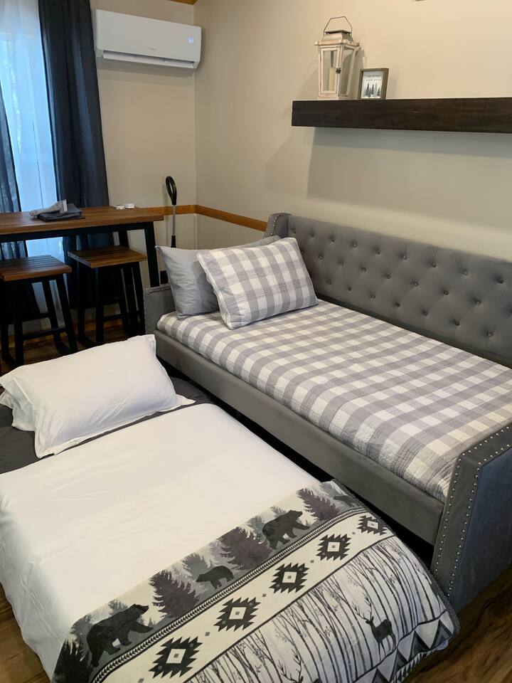 Uber & Lyft frequent the area. Downtown is 1.8 mi away and is walking distance for those inclined but we don't recommend walking if you plan to come back after dark. The roads are not lit and walking could be dangerous for pedestrians. Parking downtown typically will cost you something. Certain periods of the year Wisconsin Dells doesn't charge for street parking. Hiking & Recreation Devils Lake is 20 min away in Baraboo. Rocky Arbor State park is 2 min from our location. Mirror Lake State Park is 10 min from our location. Shopping: Walmart is a short drive down I90 (7mi) Tanger Outlet mall is a short drive down I90 (8 mi) Coffee & Breakfast: Our favorite, Bella Goose, Dunkin, Starbucks, Denny's and IHOP are 1.5 miles away. Dining: There's so much to take in...here's our favorites: The Keg- Great burgers, pizza, flat breads, wraps...and their loaded tots are to die for! Riverwalk Pub - Log cabin atmosphere and great food. Showboat - Hot Wings & Warm Beer & Loud Music...Dells Historical site. Monks(DOWNTOWN) - You can't do the Dells without getting a Monk Burger House of Embers- Prime rib, ribs, pasta...they have a bit of everything, you won't be disappointed! B-Lux - Milkshakes are incredible and some of the best cheese curds in town! Summer House (Summer months) Awesome patio overlooking Lake Delton Brat House - Late night eats and great German dishes! Sorentos - Italian fare, favorite spot for an intimate dinner. Ask for the fireplace table! Del-Bar - Famous Wisconsin Supper Club with some awesome Steaks! Ishnala - It's an experience. Plan for an evening and get there early. Bobbers/The Reef - Cool nightclub and restaurant with an Island fair. Live music on Fridays! Jose's - Great spot right up the road with the best Mexican in town. Enjoy the 120oz Margarita with your friends! A bit off the beaten path...J's Pub in Reedsburg. Great Pork Tenderloin, Salmon, Steak and two fireplaces to warm you up. Gas station & Convenience Store is 1 mile away